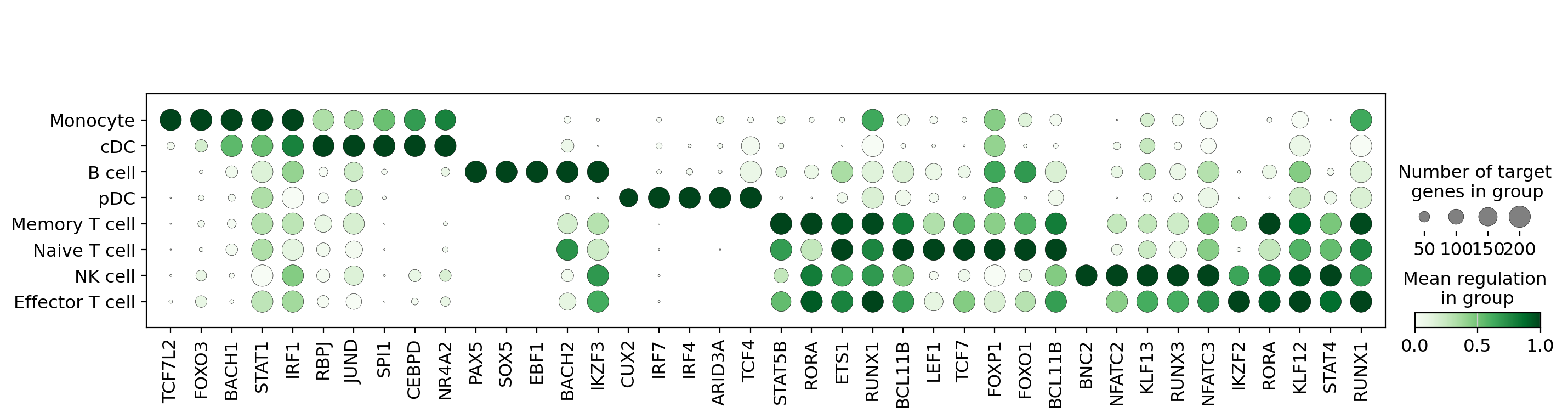 'Monocyte': ['TCF7L2', 'FOXO3', 'BACH1', 'STAT1', 'IRF1'],